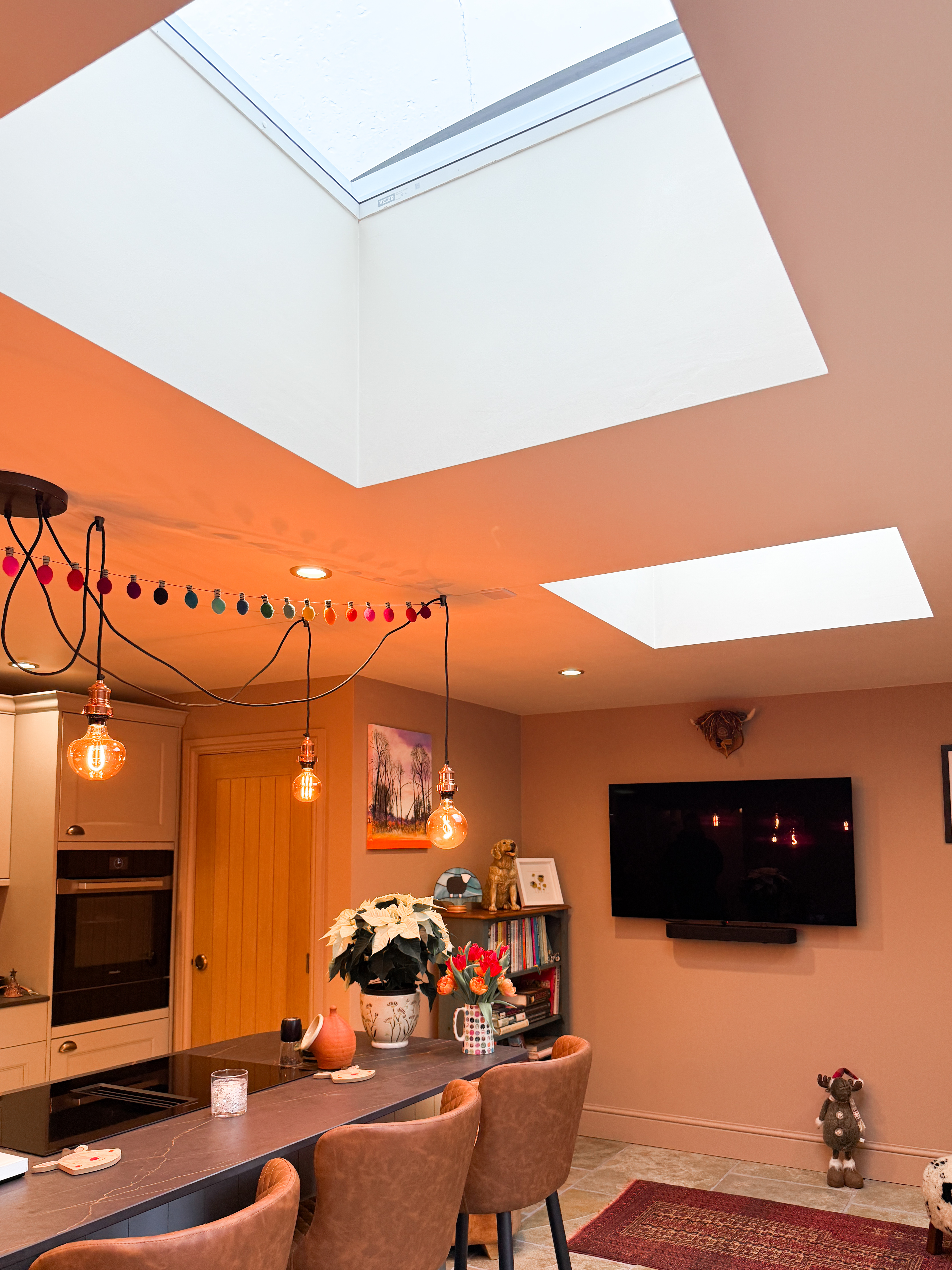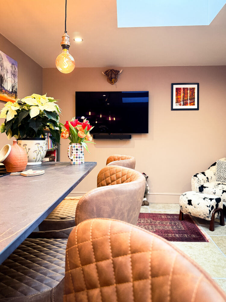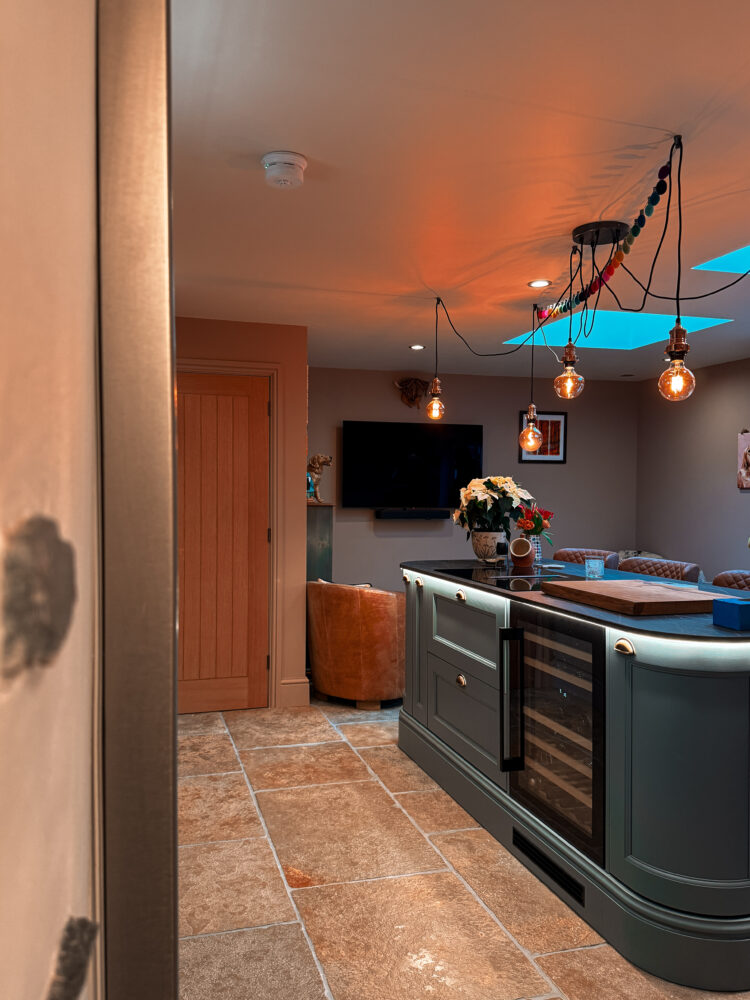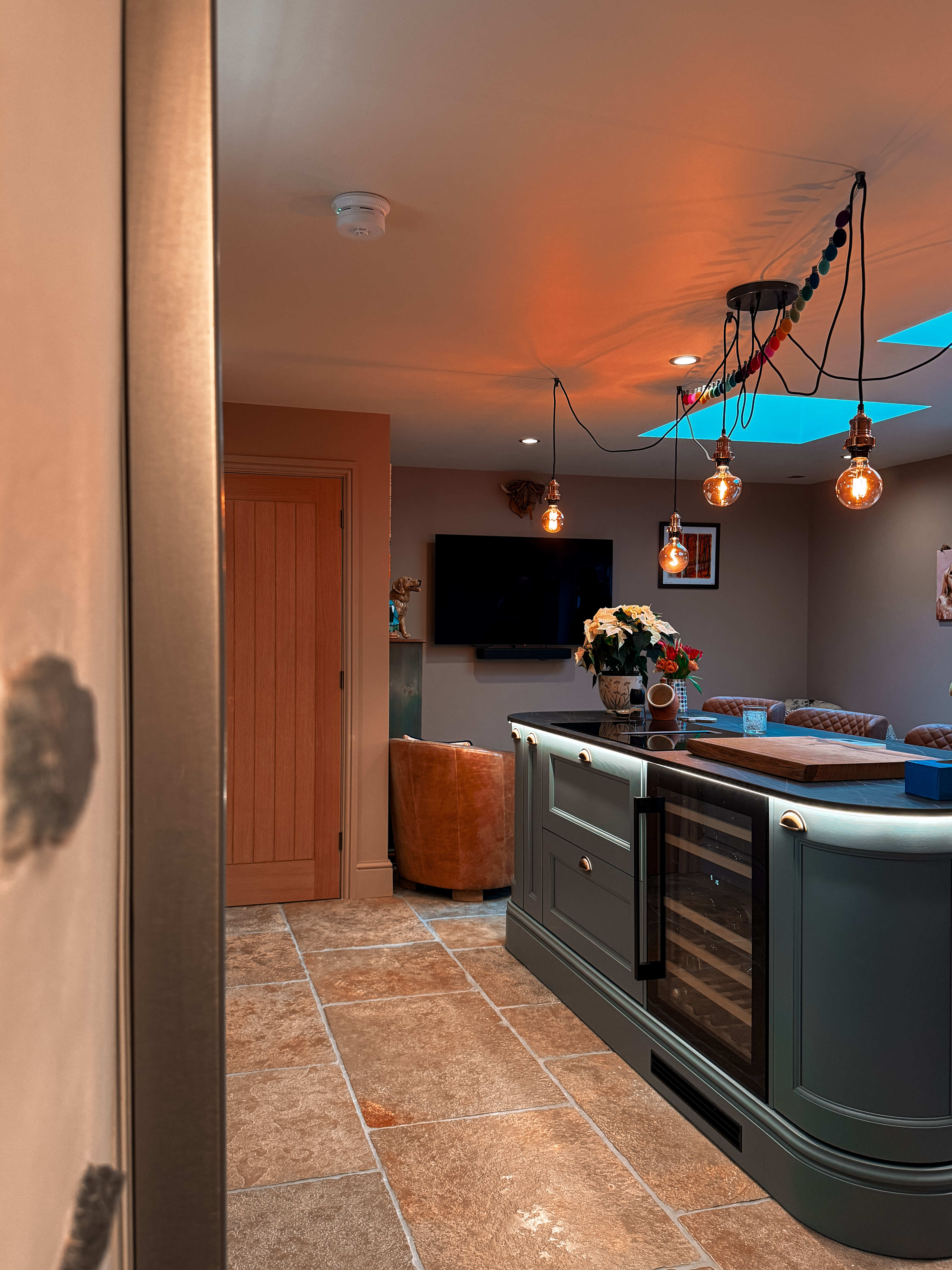 This former garage has been converted into an extended kitchen and living space with a pantry store, seamlessly linked to the existing home by knocking through internally. An added timber frame improves energy efficiency, delivering a space that’s both practical and future-ready.